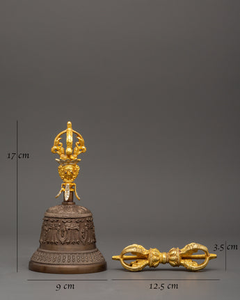 Handcrafted Meditation Bell and Vajra Set | Brass and Bronze Ritual Tools