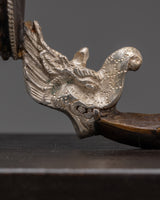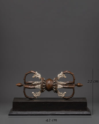 This Handcrafted Spiritual Dorje Vajra is an exquisite piece of art, symbolizing strength, protection, and spiritual power. Made with an oxidized copper body and beautifully silver-plated finish, it stands as a perfect representation of ancient Tibetan symbols of spiritual strength. Measuring 22cm in height and 42cm in width, this unique artifact is designed to inspire your spiritual journey. The vajra is an essential tool in Tibetan Buddhism, used in rituals to symbolize the unification of wisdom and compassion.