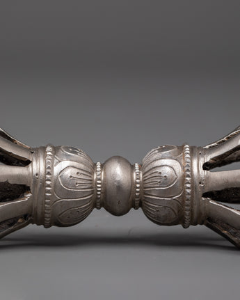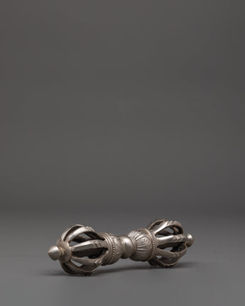 This Vajra, meticulously crafted from iron, represents both artistic and spiritual significance. Its symmetrical design emphasizes harmony, while the intricate lines and motifs capture the Dharma's ageless spirit. The Vajra, which has traditionally been employed in rituals to cut through ignorance and eliminate negativity, is also an effective meditation instrument, allowing practitioners to focus their thoughts and connect with higher levels of awareness. It also serves as an essential addition to any altar, shrine, or holy space, bringing the benefits of clarity, protection, and inner serenity.