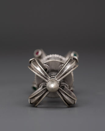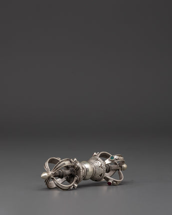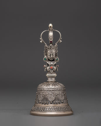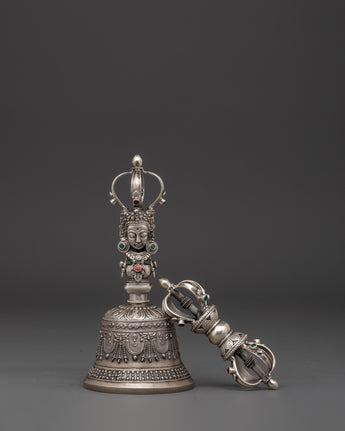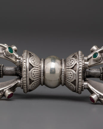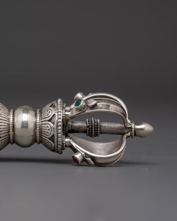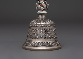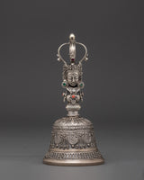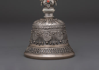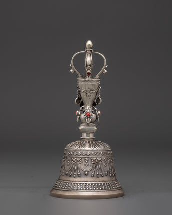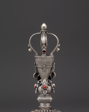 Silver Vajra Bell for Altar | Coral Inlay Vajra