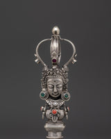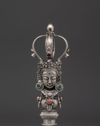 Elevate your spiritual practice with this exquisite Silver Vajra Bell for Altar set, skillfully handcrafted to enhance Buddhist rituals and meditation. Measuring 18cm x 8.5cm for the bell and 3cm x 12cm for the vajra, each piece is crafted from silver that radiates purity and reverence. The addition of artificial coral not only enriches the visual appeal but also symbolizes sacred energy and protection. Perfectly balanced and beautifully detailed, this set brings both tradition and elegance to your altar, helping you deepen focus and create a serene, sacred atmosphere in your meditation space.