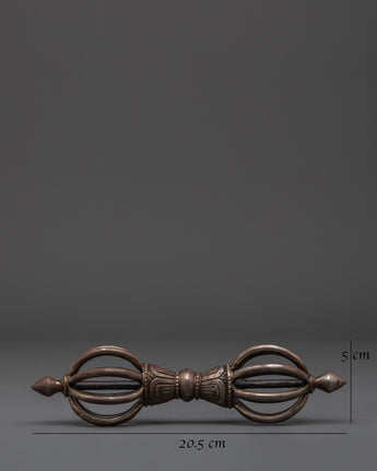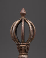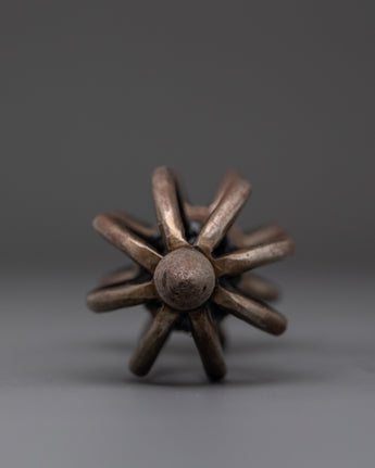 Handcrafted from Iron by skilled Himalayan artisans, the Vajra boasts precise detailing and a balanced structure, making it an ideal choice for both ceremonial use and display. Its warm bronze tone and design reflect the enduring traditions of Tibetan spiritual art. Whether used on an altar, in ritual offerings, or as a meditative focus, it brings strength, clarity, and protective energy into your sacred space.