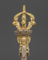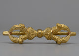 The Tibetan Sacred Vajra and Bell Set is an exquisitely created set that perfectly captures the essence of traditional Tibetan Buddhist craftsmanship. The bell part is skillfully created from bronze, but the vajra and bell handle are constructed of sturdy brass. Rich, resonant sound is ensured by this combination, which improves the spiritual atmosphere during rituals and meditation exercises.