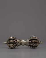 Introducing the Tibetan Vajra and Bell Set, an exquisitely created set that perfectly captures the spiritual legacy and extraordinary creativity of Tibetan handicraft. This set combines longevity with a classic aesthetic appeal, featuring a bell crafted from bronze and a vajra made of fine silver. The bell, which stands for wisdom and the voice of the Dharma, and the vajra, which symbolizes the unbreakable essence of truth and compassion, complement each other well.
