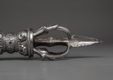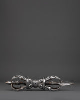 This Vajra, made of iron, has complex decoration that showcases the painstaking craftsmanship that goes into each item. The corresponding stand enhances its appearance as Shri Vajra altar decor, representing the path to spiritual awakening. Whether displayed in your meditation room or used in ritual practice, this Tibetan Vajra holds deep cultural significance and serves as a powerful reminder of inner strength and clarity.