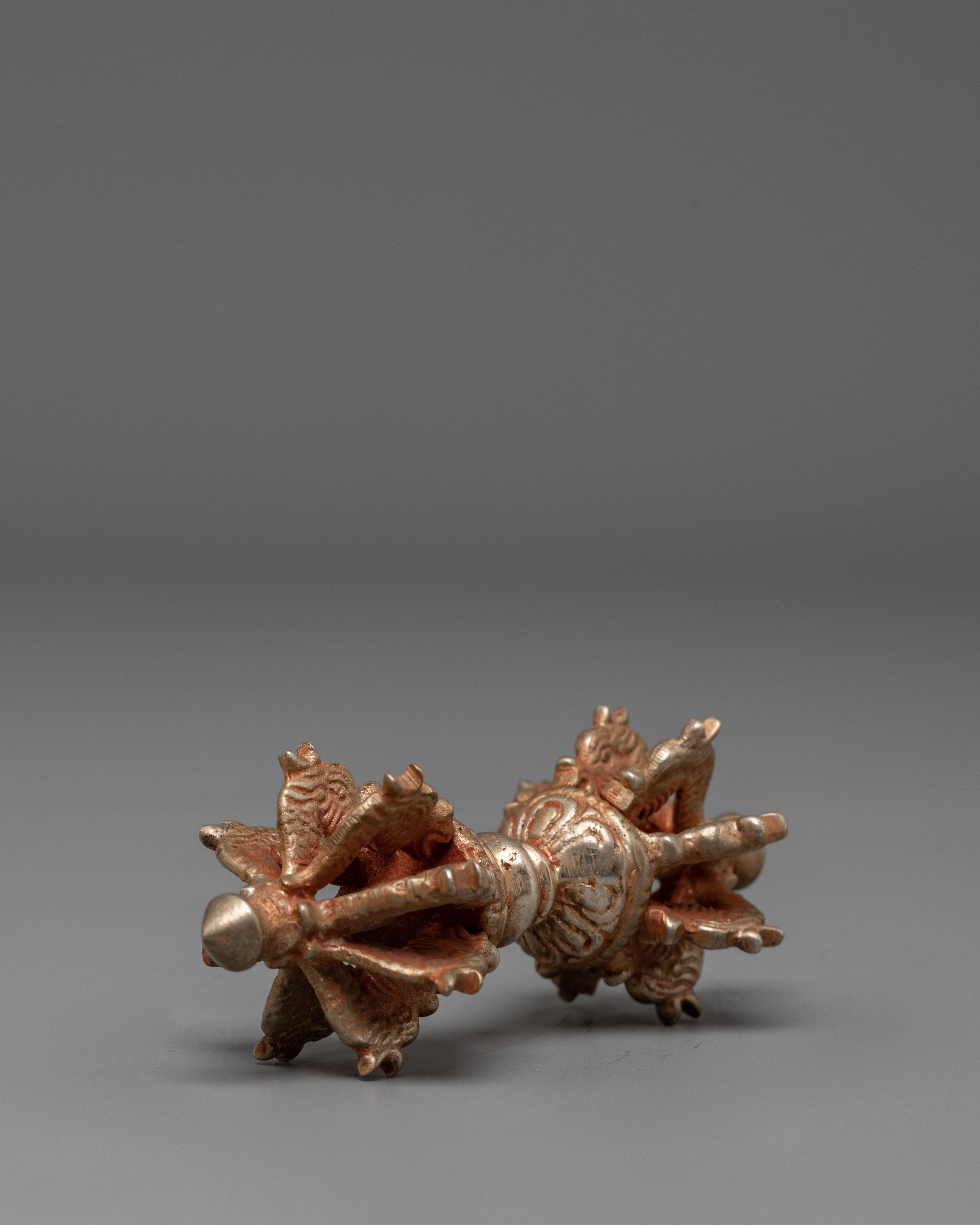 Perfect for meditation, empowerment ceremonies, or devotional rituals, this compact yet powerful vajra embodies the indestructible essence of enlightenment—“thunderbolt” and “diamond” in one. Its warm copper tone offers grounding energy and comfortable handling, making it ideal for personal altars or travel practice. Handcrafted with care, this sacred implement honors the profound lineage of Vajrayana Buddhism and serves as a meaningful connection to its transformative spiritual heritage.
