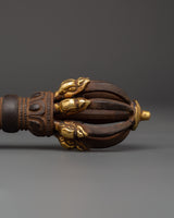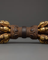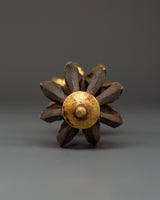 This Vajra is ideal for practitioners and collectors of Himalayan spiritual objects, representing the everlasting history of Tibetan workmanship. The gold plating not only gives a noble touch but also underlines the item's status as a sacred ritual relic. This Vajra is profoundly significant whether used during Buddhist rituals, set on an altar, or displayed as a one-of-a-kind piece of spiritual décor. It's a wonderful present for anybody looking to improve their contemplative practices or expand their Buddhist library.