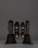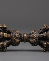 The Copper Vajra and Bell with Cover is a complete Tibetan Buddhist ritual set designed for spiritual practice, meditation, and ceremonial offerings. The bell represents wisdom and the feminine principle, while the vajra symbolizes compassion and the masculine principle, the union of which embodies enlightenment in Vajrayana tradition. The protective cover keeps the bell safe and clean when not in use, making this set both functional and elegant for daily practice or ceremonial use.