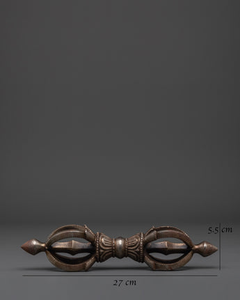 The Vajra Ritual Weapon, known in Tibetan Buddhism as a Vajra, symbolizes the union of compassion and wisdom, representing an indestructible and all-powerful force. Used in Vajrayana rituals, the Vajra represents the enlightened mind and is a central tool in ceremonies that invoke protection, clarity, and spiritual strength. Measuring 27cm in width, this substantial piece carries both symbolic depth and artisanal beauty, making it perfect for spiritual practitioners and collectors.