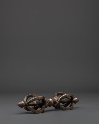 Carefully forged from iron by expert Himalayan craftsmen, the Vajra showcases intricate artistry rooted in ancient traditions. Its perfectly balanced form is perfect for rituals or as a revered altar ornament. Serving as a meditation support, offering an instrument, or a distinctive spiritual decoration, this thunderbolt emanates strong energy and divine blessings.