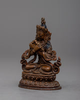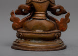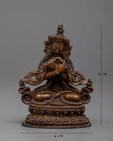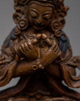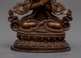 Presenting our 6 cm tall Great Vajradhara Statue, which is a masterfully crafted piece of oxidized copper machine work. This statue, however machine-made, captures the spirit of Vajradhara, the first Buddha, though fine details might differ. Even in the lack of all the details, it exudes the spiritual significance and strong presence of Vajradhara, signifying the oneness of wisdom and compassion as well as the ultimate nature of reality. This sculpture is ideal for personal meditation areas or as a heartfelt present. It is a powerful reminder of the enlightened traits we want to develop within ourselves.