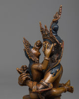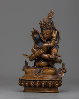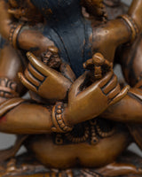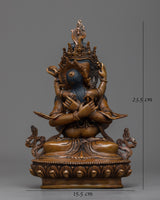 Handmade with reverence and accuracy, the rusted copper body lends a rustic appeal, signifying the eternal essence of enlightenment. Allow its presence to inspire reverence and wonder as you seek a greater understanding of divine love and wisdom. Embrace the sacred connection with the Vajradhara Consort Statue, where artistry and spirituality unite to awaken the soul.