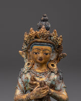 The Vajradhara Tantra Buddha Statue is a significant piece capturing the essence of Tibetan Buddhist art. The statue's intricate design portrays Vajradhara Buddha, the primordial figure in tantric Buddhism, symbolizing the unity of wisdom and compassion. The calm expression on the Buddha’s face and the delicate, flowing robes add to the spiritual aura of this unique piece. It’s the perfect addition to any meditation space, creating an environment of peace and serenity.