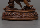 Accept the profound presence of the Vajrakilaya Consort with this amazing statue, which has an oxidized copper body and is painstakingly carved using machine processes. This statue, which is 12 cm tall and 9 cm wide and has spiritual significance, exudes strength and transformation. It provides a significant touch to any sacred location and weighs 0.45 kg.