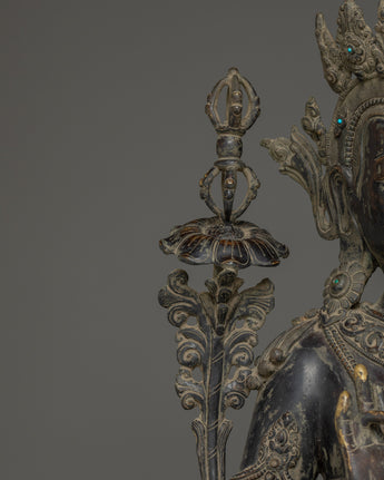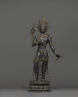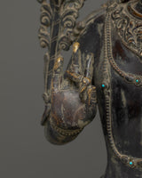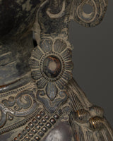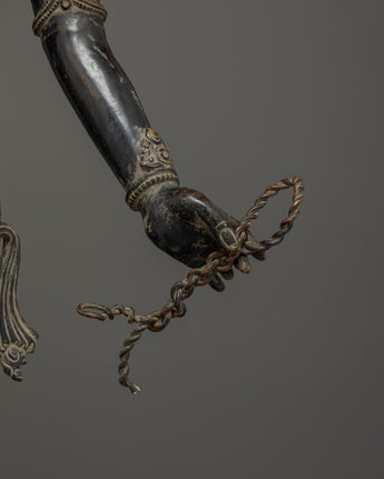 Every contour and detail is hand-chiseled by master artisans of the Himalayas, bringing forth a lifelike energy that commands respect and reverence. The oxidized finish enhances its character, emphasizing the spiritual intensity of Vajrapani’s form. This masterpiece not only serves as an object of devotion but also as a statement of strength, transformation, and divine protection—perfect for temples, prominent home shrines, or collectors of sacred Buddhist art.