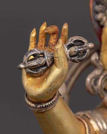 Handcrafted Vajrapani Statue | Copper Body with Gold Plating, Pure Silver & Acrylic Paint
