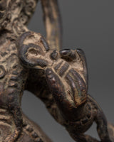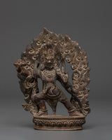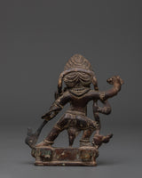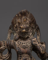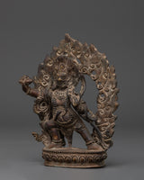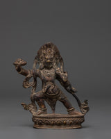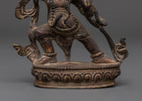 Vajrapani Figurine is crafted from copper and features an antique finish that highlights its intricate details. This protector deity statue embodies strength and protection, making it an inspiring addition to any space.