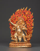Vajrapani represents the fearless protector, using his strength and wisdom to guide practitioners on their spiritual journeys. This statue symbolizes not just physical power but also the spiritual strength required to overcome obstacles. The copper and gold-plated design adds an element of timeless elegance, while the acrylic coloring highlights the intricate artistry of the piece. Whether placed in your meditation room, altar, or spiritual space, it invites strength, protection, and enlightenment.