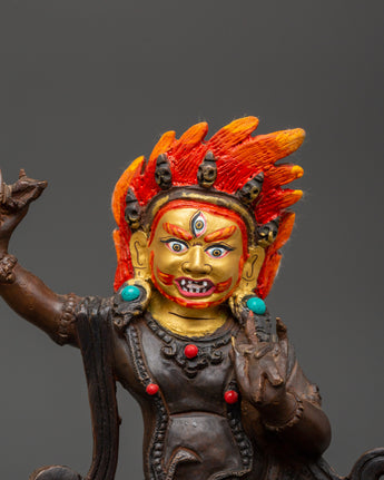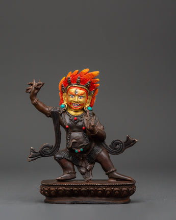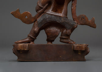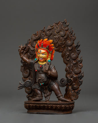 Oxidized Copper Vajrapani Thunderbolt Holder Statue | Dharma Protector Figurine