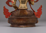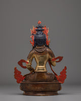 This Sacred handmade Vajrasattva statue stands as a profound symbol of spiritual purity and enlightened clarity. Crafted by skilled artisans from oxidized copper with delicate gold plating, the 32cm-tall figure radiates timeless elegance and a reverent energy. Weighing 2.87kg, its substantial presence makes it an ideal focal point for meditation spaces, altars, or sacred rooms. The masterful detailing captures every nuance of traditional craftsmanship, while the warm patina of oxidized copper, combined with radiant gold accents, creates a spiritually uplifting aesthetic. Whether you seek a powerful spiritual companion or a stunning artistic investment, this statue embodies the transformative essence of Vajrasattva's teachings on purification and enlightenment.