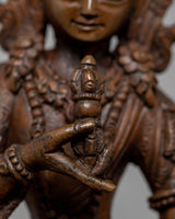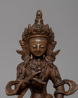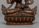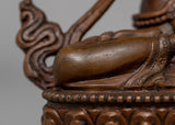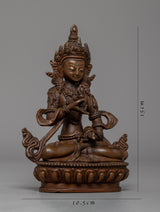 See here is the mesmerizing Dorje Sempa Vajrasattva Statue, meticulously handcrafted on an oxidized copper body and radiating wisdom and tranquility. This masterpiece, which measures 15 cm in length, perfectly captures the spirit of Vajrasattva's enlightened presence. The statue exudes an air of innocence and compassion with its intricate details and calm demeanor.