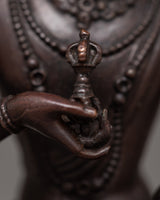 In our Dorje Sempa Meditation Statue, you can unleash the power of mindfulness in a sublime fusion of modern precision and spiritual grace. This machine-made masterpiece, measuring a perfect 10.5cm, is made of oxidized copper and promises an unparalleled meditation experience.