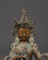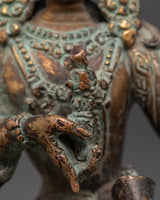 The antique copper finish gives the statue an enchanted, aged aspect, heightening its spiritual presence and significance. This Vajrasattva statue is not just a gorgeous decorative object, but also a potent spiritual aid for meditation and ceremony. The excellent craftsmanship guarantees that it will be a treasured antique for years to come. Whether you want to strengthen your spiritual practice, improve your meditation area, or add a sense of esteem to your surroundings, this statue will help you on your road to purity, compassion, and enlightenment.