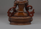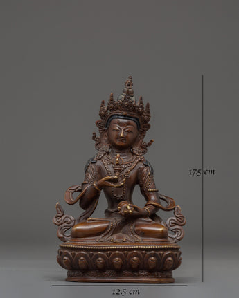 This Handmade Purification Deity Vajrasattva Sculpture embodies the core of spiritual purification and profound wisdom in Buddhist tradition. Standing 17.5 cm tall and 12.5 cm wide, and weighing 0.80 kg, the statue portrays Vajrasattva seated gracefully in meditation, holding the vajra in his right hand and the bell in his left. These sacred ritual objects symbolize the union of wisdom and compassion—essential qualities on the path to enlightenment. Crafted from oxidized copper, the sculpture radiates calm dignity and serene energy, inviting deeper mindfulness and spiritual cleansing into any altar or sacred space. Ideal for practitioners seeking purification, clarity, and balance, this statue serves as a powerful reminder of the transformative power of inner harmony and enlightened awareness.