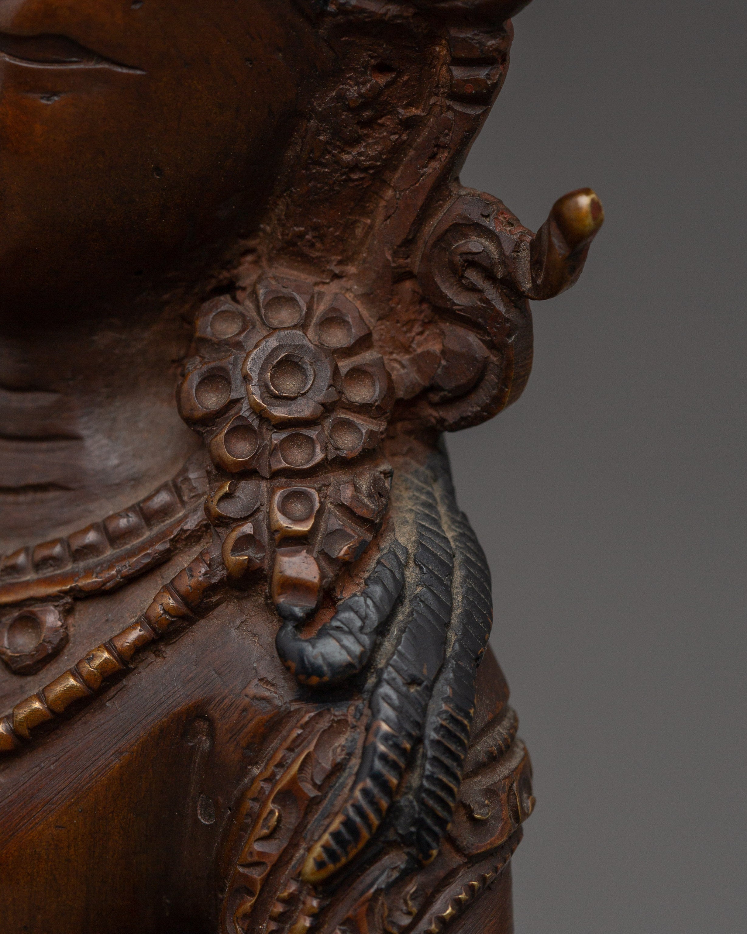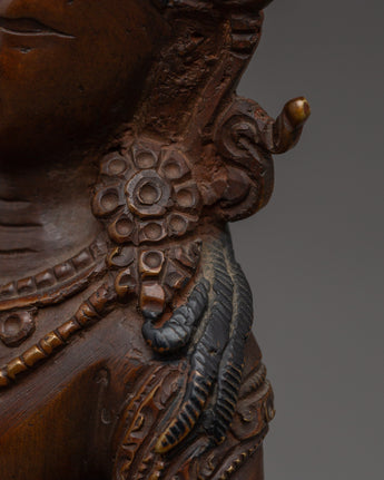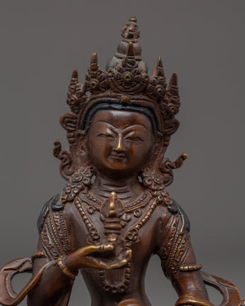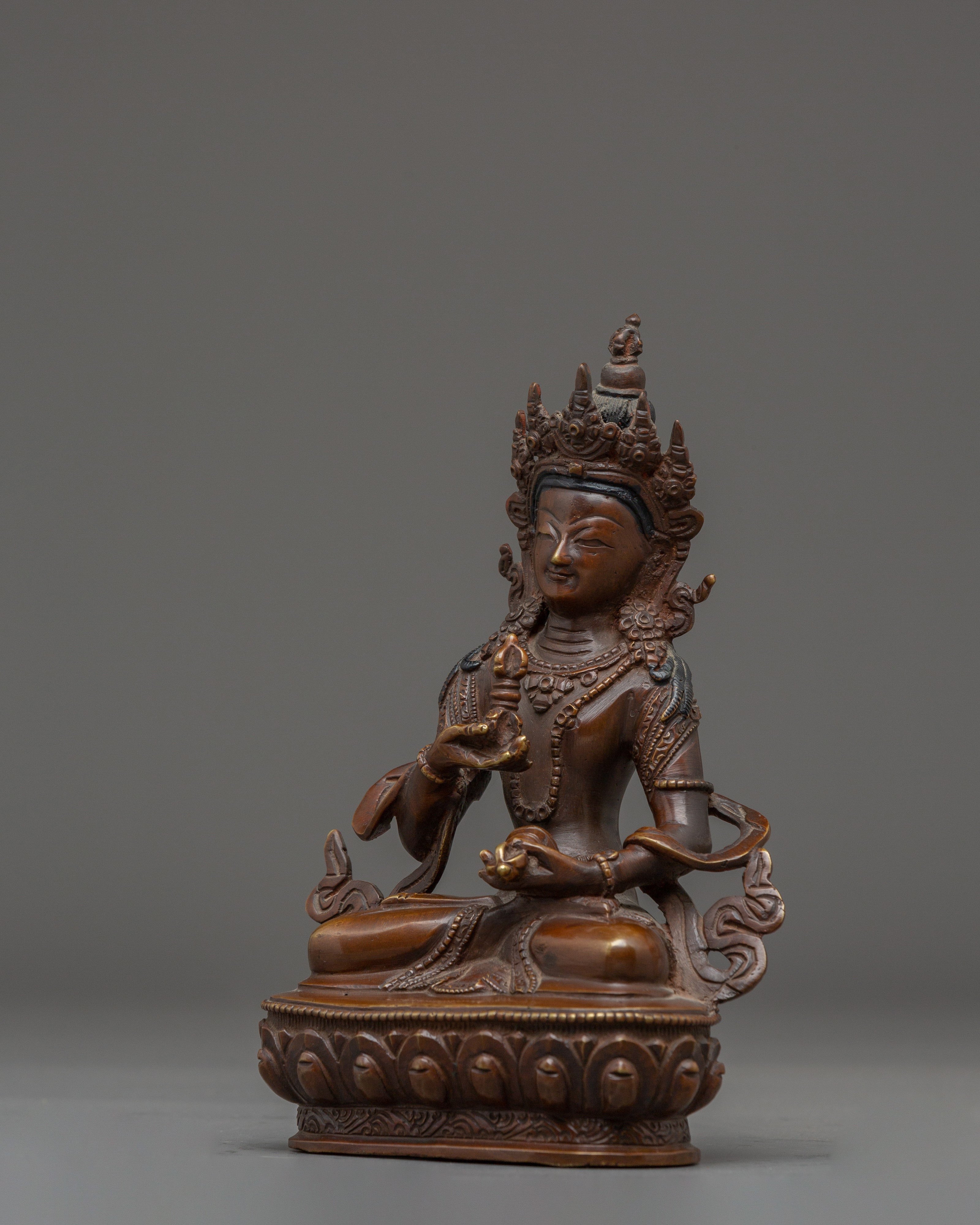 The sculpture features delicate crown embellishments, flowing robes, and beautiful jewelry patterns, all of which capture the elegance and symbolic profundity of ancient Buddhist workmanship. Vajrasattva is renowned as the ultimate purifier, removing impediments and negative karma, making this statue an inspiring addition to meditation rooms, altars, or as a thoughtful spiritual gift. Every detail serves as a reminder of the transformational power of cleansing, which promotes clarity, tranquility, and loving action.