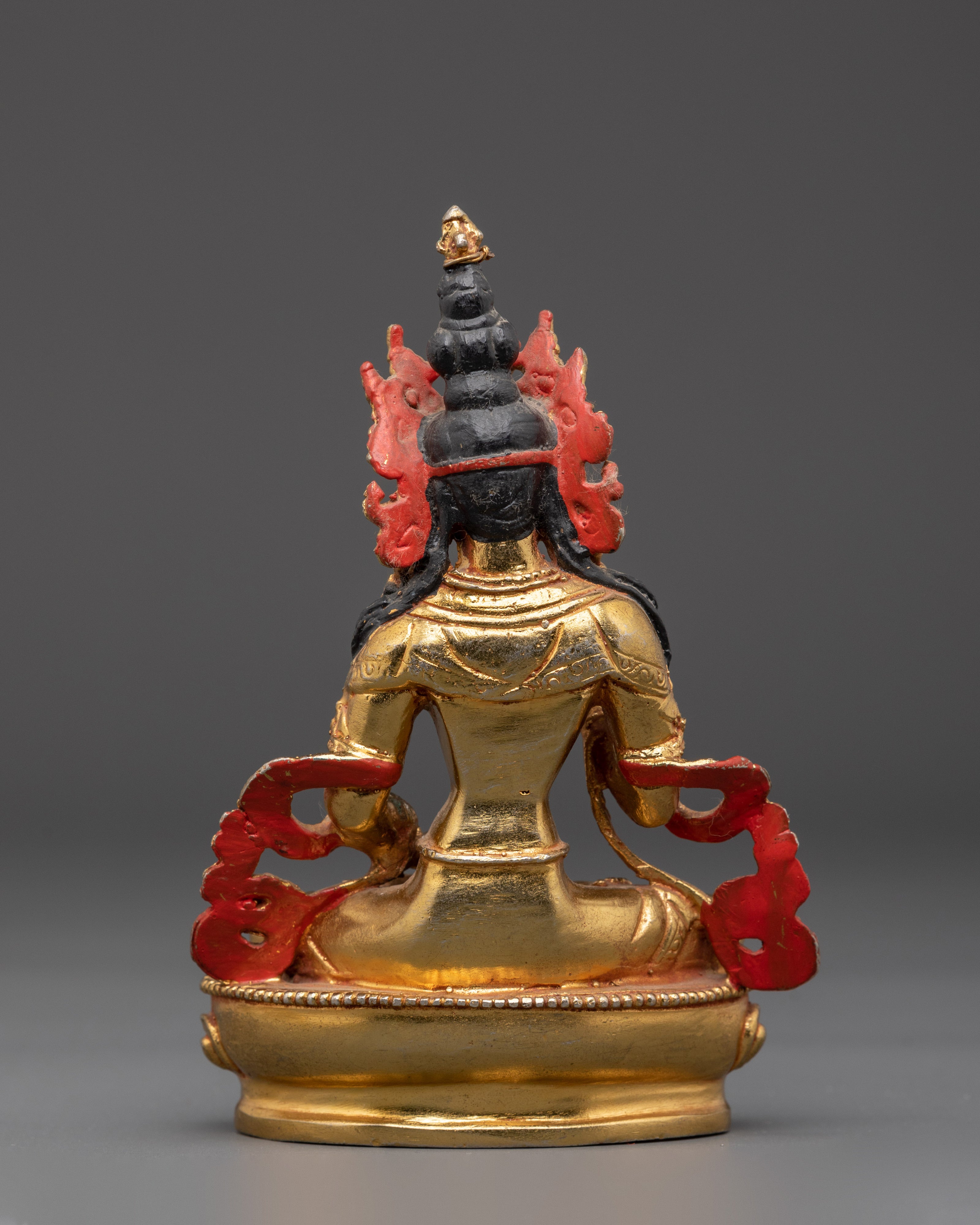 The statue's copper body offers a strong base, and the gold plating highlights the design's beauty and spiritual importance. Sitting on a lotus base, Vajrasattva symbolizes purity and the unwavering pursuit of enlightenment. Buddhist altars, meditation spaces, or spiritual collections are especially enhanced by this exquisite sculpture, which infuses any area with profound symbolism and vitality. The Tibetan Gold Plated Vajrasattva Statue is an effective spiritual practice aid in addition to being a beautiful object. It helps practitioners purify their thoughts and feelings by reminding them of Vajrasattva's cleansing properties. This statue is a precious addition to any altar or meditation area since it will provide protection, healing, and spiritual clarity to any setting.