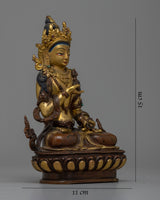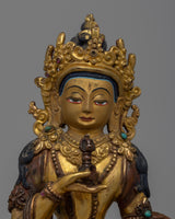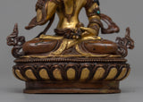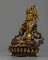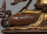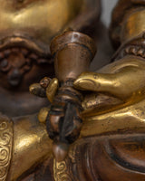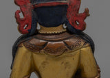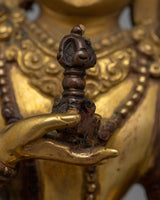 The statue's copper body is partially plated and gilded with 24k gold, giving the figure an air of luxury and reverence. The intricate gilding technique brings out the fine craftsmanship and details, resulting in a work of art that is both aesthetically pleasing and spiritually significant. In addition to adding to the statue's beauty, the gold plating represents the value of Vajrasattva's teachings.