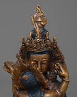 Take a holy trip with the Vajrasattva and Consort Statue, a magnificent masterpiece carefully fashioned on an oxidized copper. This combination of Vajrasattva and his spouse represents the harmonious balance of wisdom and compassion, guiding aspirants to spiritual enlightenment. Standing 24cm tall, this statue exudes a timeless aura that transcends earthly bounds, inviting devotees to explore the depths of divine connection.