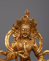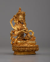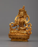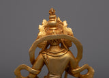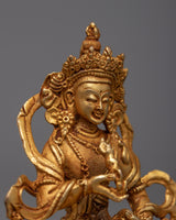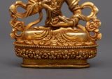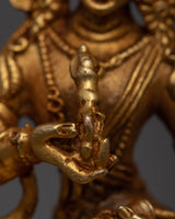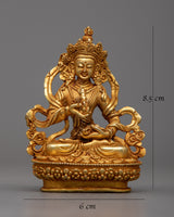 At 8.5 cm tall, the machine-made statue of Vajrasattva represents the Bodhisattva of Purification's purity and transformational power. This statue depicts the minute features of Vajrasattva's peaceful face and celestial qualities. It was created with extreme precision using machine techniques. Crafted from copper and embellished with a brilliant 24k gold plating, it exudes a sense of spiritual grace and purity.