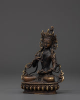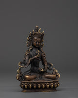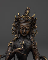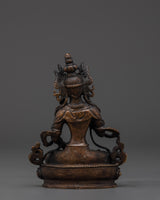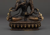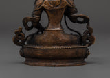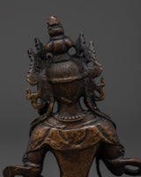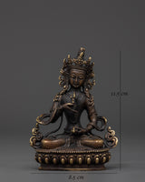 The statue's beautiful workmanship represents traditional Tibetan artwork, portraying Vajrasattva's loving presence as well as symbolic traits that promote spiritual purification and healing. The antique finish adds to the piece's timeless and spiritual appeal, making it ideal for meditation or altar use.