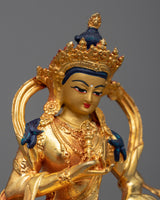 The Vajrasattva Statue Made by Machine is a divine representation of purity and enlightenment that has been skillfully made on a copper body with accuracy. Standing 10cm tall, this magnificent statue captures the tranquil presence of Vajrasattva, the essence of spiritual purification and transformation.