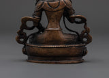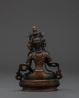 This beautifully handcrafted Vajrasattva, the great Purifier statue, is crafted from brass with an antique finish and measures 11cm in height and 8.5cm in width, making it suitable for home altars or meditation areas. The intricate craftsmanship highlights Vajrasattva's serene appearance, symbolic hand mudras, and flowing robes, which symbolize purity and compassion. The antique finish adds to the mystical aura of this precious object while also providing a genuine Himalayan style.