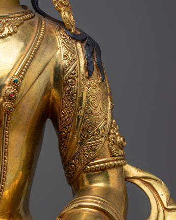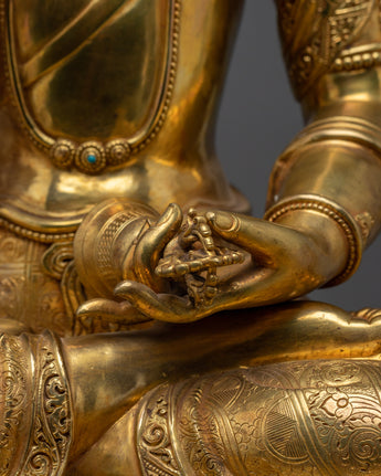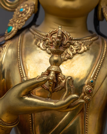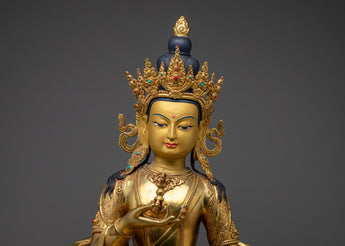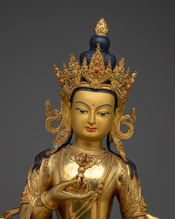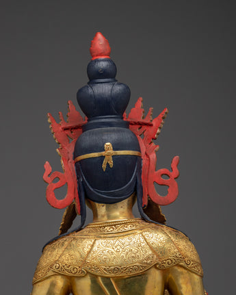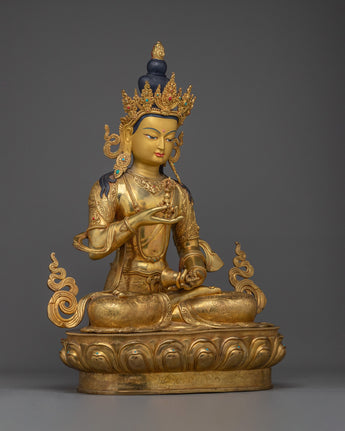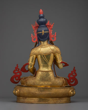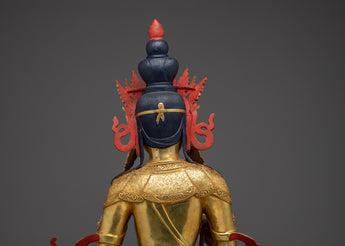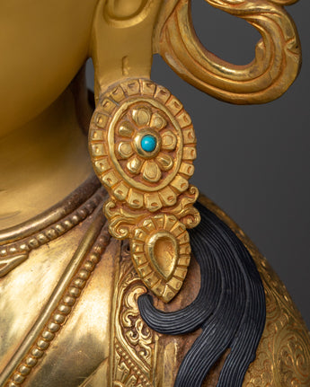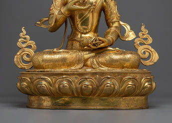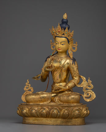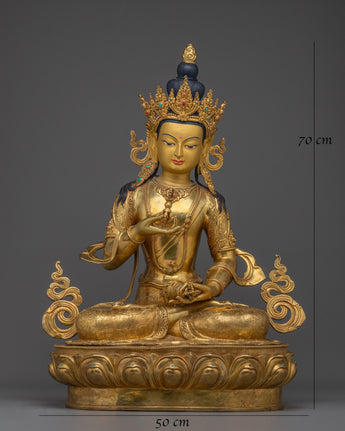 Expertly handcrafted from a copper body and gold-plated, this statue is a testament to exceptional Himalayan craftsmanship. The intricate detailing, from the serene facial expression to the ornate ornaments, captures the divine presence of Vajrasattva. Its grand size and luminous golden finish make it a powerful centerpiece for temples, personal shrines, or meditation spaces, radiating blessings and spiritual protection to all who encounter it.