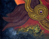 Experience the fierce and transformative energy of the Dakini Vajrayogini with this stunning digital Newari Paubha print. Depicted in vivid detail, this artwork showcases Vajrayogini's striking red form, adorned with a crown that symbolizes her power over ignorance and desire. The intricate iconography of the print highlights Vajrayogini's role as a guide on the path to enlightenment, with her vajra and bell representing the union of method and wisdom. This paubha print is not only a work of art but a powerful reminder of the transformative power of Vajrayogini-empowerment. As you gaze upon this magnificent artwork, allow yourself to be infused with the fierce and compassionate energy of the Dakini Vajrayogini, empowering you on your spiritual journey.
