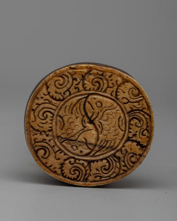 The Vajrayogini Bone Stamp, made with the highest care and respect for ethical sourcing, is a precious spiritual practice and ceremony tool. Whether utilized in traditional ceremonies, meditation techniques, or as a decorative object, it embodies ancient wisdom and spiritual empowerment. Stamping allows devotees to invoke Vajrayogini's blessings and guidance, strengthening their connection to the spiritual path and promoting inner transformation.