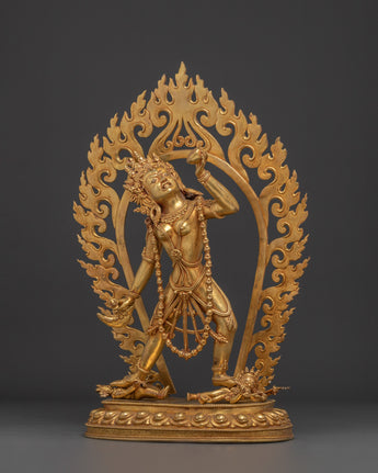 This gold-plated Vajrayogini statue is not just a decorative piece; it is a powerful spiritual symbol. Vajrayogini, often depicted in her tantric form, is believed to be able to transform negative energy and guide practitioners towards enlightenment. This sacred piece is ideal for those seeking to deepen their spiritual practice or to simply add a meaningful, powerful presence to their home. Whether as a meditative tool or a sacred offering, this statue will surely enhance the spiritual ambiance of any sacred space.