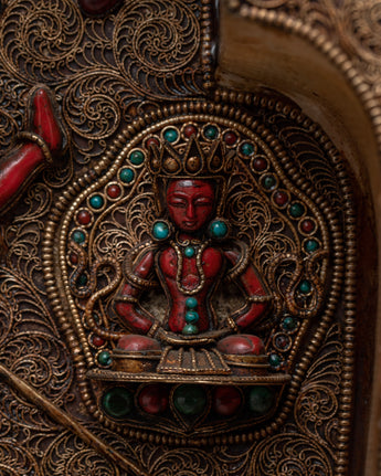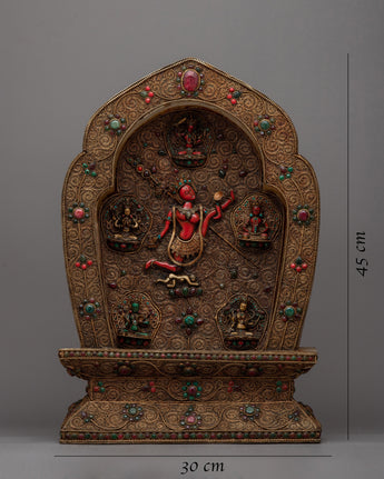 Handmade Vajrayogini Statue | Copper with Turquoise, Coral, and Panna