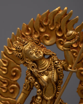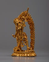 The Machine Made Copper Vajrayogini Statue is a stunning example of spiritual energy and creative refinement. This finely crafted statue, with a copper body, depicts the essence of Vajrayogini, a beloved goddess in Tibetan Buddhism known for her transformational power and compassionate knowledge. Standing at 10.5 cm tall, this statue is embellished with precise features and completed with a brilliant layer of 24k gold plating, heightening its majestic presence.