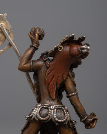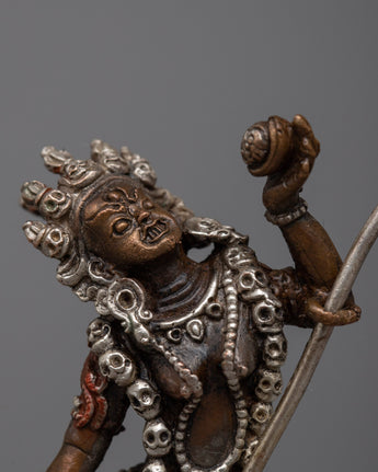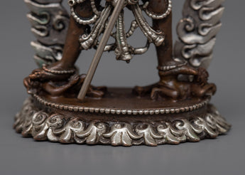 Presenting the machine made statue that is exquisitely crafted Vajrayogini statue stands elegantly at a height of 11cm, with a copper body and a delicate silver coating. The heavenly essence of the legendary Vajrayogini, a figure embodying wisdom and enlightened energy, is embodied in this statue.