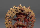 This Vajrayogini Handcrafted Copper Statue stands at 11cm tall and is crafted from copper, with gold plating that enhances the divine beauty of this Tibetan goddess. Vajrayogini, the embodiment of transformation and wisdom in Vajrayana Buddhism, is depicted in her empowering form, offering spiritual guidance, strength, and the potential for enlightenment.