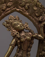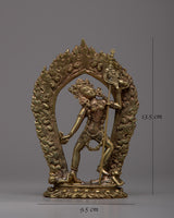 Introducing the Vajrayogini Mantra Practice Statue, an exquisite example of meticulous craftsmanship and spiritual artistry. This statue is crafted by hand using brass and measures 13.5 cm in height by 9.5 cm in width. It weighs a heavy 2.64 kg. The exquisite engravings on the brass body reflect the mighty aura and celestial qualities of Vajrayogini, a central Tibetan Buddhist figure recognized for her transforming and compassionate force.