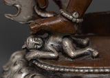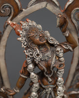 We have traditionally designed and craved the Dakini Vajrayogini Sculpture using a machine with an oxidized copper body. To demonstrate that she has destroyed her attachment, hatred, and ignorance, as well as to demonstrate that she is free from the fears of samsara and may guide all living things to the same liberation, the deity is shown staining upon Kalarati and Bhairawa. One can use utilize this statue for Buddhist rituals, yoga, and regular meditation. This will be a perfect gift from Nepal to practitioners like you.