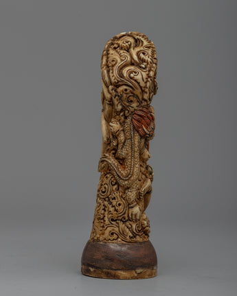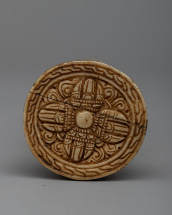 This stamp embodies the rich spiritual traditions of the Himalayas and bears the essence of Vajrayogini, a revered figure in Tibetan Buddhism. The use of ethically sourced bone demonstrates a dedication to both artistic excellence and environmental stewardship.