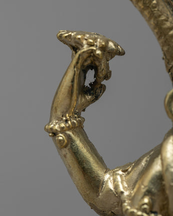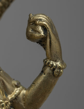 This handcrafted brass statue shows the heavenly Vishnu Avatar, demonstrating the designers' remarkable craftsmanship and attention to detail. The sculpture is made of brass, which lends a touch of elegance and durability, while the elaborate carvings and embellishments highlight the deity's divine characteristics and symbolic representations. Vishnu is depicted in multiple arms, each holding an important object representing his various abilities and functions. This statue represents Vishnu's almighty presence in a beautiful and meaningful way, allowing worshippers to connect with his divine energy and seek blessings.