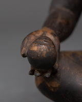 This hand-carved Black Dzambhala Statue, made of oxidized copper, bestows enormous blessings of fortune, protection, and spiritual progress. This statue, 17.5 cm tall, 16.5 cm wide, and weighing 1.74 kg, depicts the powerful yet compassionate presence of Dzambhala, a revered deity in Tibetan Buddhism. The dark form of Dzambhala represents the transformation of poverty and negative karma, offering powerful protection against financial difficulties while promoting prosperity and stability.