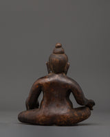 Dzambhala sits in a comfortable yet overpowering position, holding a mongoose that spews precious gems, symbolizing endless prosperity and kindness. His sturdy, powerful body embodies the strength necessary to face life's challenges and protect spiritual and financial well-being. The statue promotes the holiness of any meditation room, personal shrine, or spiritual sanctuary. Every element, from his look to the fine craftsmanship, is infused with spiritual meaning.